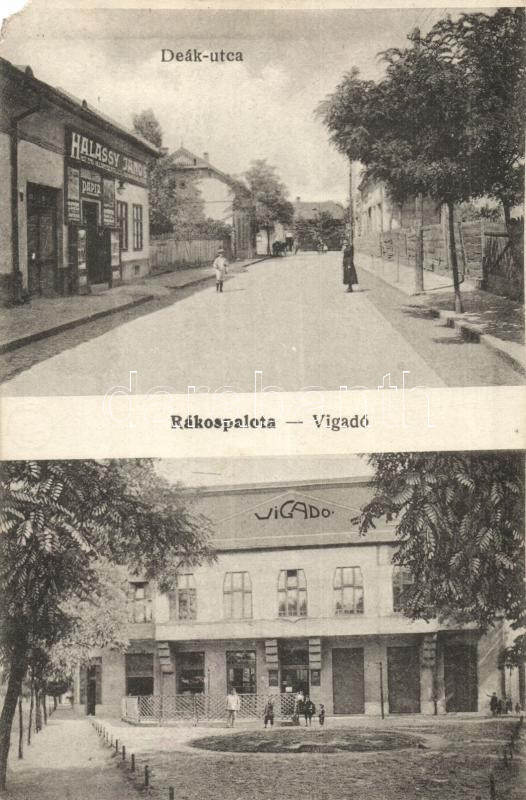 Beschreibung: Budapest XV. Rákospalota, Deák utca, Vigadó, Halassy János üzlete és saját kiadása (EM)