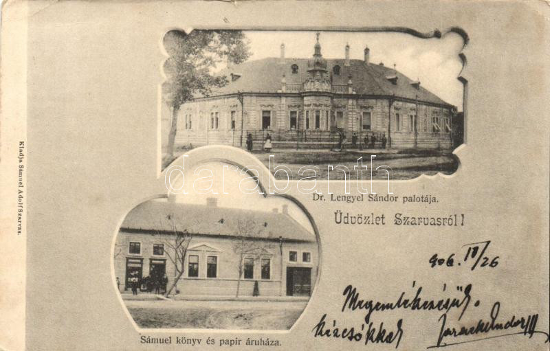 Szarvas, Dr. Lengyel Sándor palotája, Sámuel Adolf könyv és papíráruhá... https://www.darabanth.com/de/297-Fernauktion/297.0/Ansichtskarten/Ungarn~7/Szarvas-Dr-Lengyel-Sandor-palotaja-Samuel-Adolf-konyv-es-papiraruhaza-es-sajat-kiadasC3~II1486693