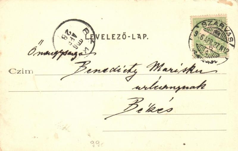 Beschreibung: Szarvas, Dr. Lengyel Sándor palotája, Sámuel Adolf könyv és papíráruháza és saját kiadású képeslapja, Art Nouveau (apró szakadás / tiny tear)