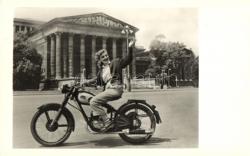Csepel 125-ös motorkerékpár reklámlapja. Motoros hölgy a budapesti Hős... https://www.darabanth.com/de/297-Fernauktion/297.0/Ansichtskarten/Werbungen~98/Csepel-125-os-motorkerekpar-reklamlapja-Motoros-holgy-a-budapesti-Hosok-teren-Hungarian-m~II1590081