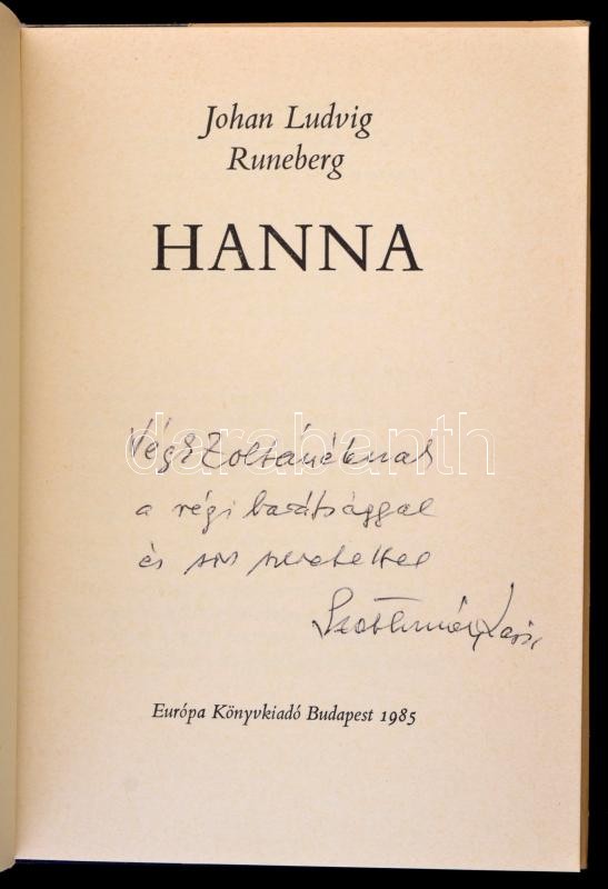 Johan Ludvig Runeberg: Hanna. Fordította Szathmáry Lajos. Illusztrálta... https://www.darabanth.com/de/297-Fernauktion/297.0/Bucher/Bucher-Andere-kuriositaten~300006/Johan-Ludvig-Runeberg-Hanna-Forditotta-Szathmary-Lajos-Illusztralta-Gyulai-Liviusz-Bp-198~II1586423