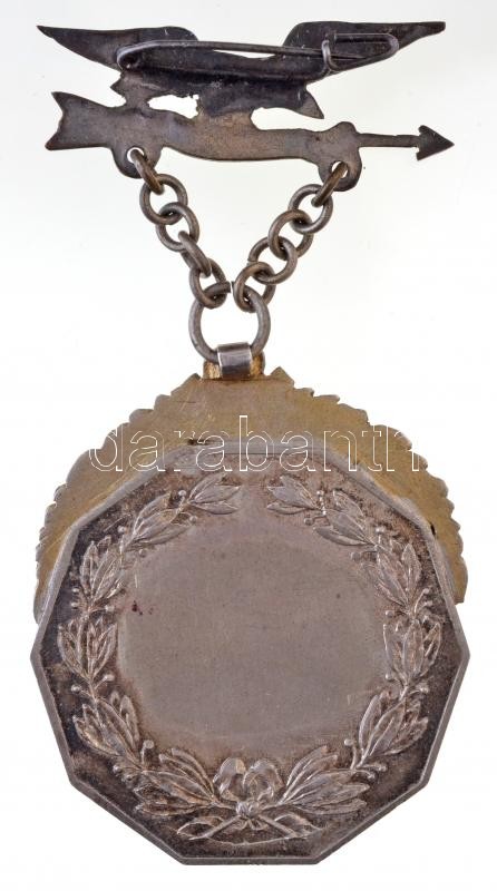 Beschreibung: ~1920-1930. "Magyar Testgyakorlók Köre - Verseny Díj" ezüstözött fém díjérem koszorús rátéttel T:2 cserélt tű