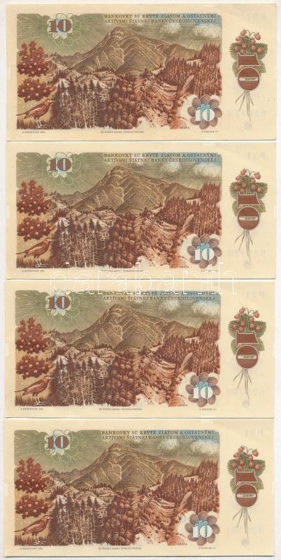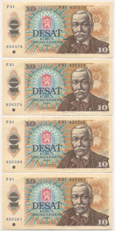 71pcs of various banknotes, including many Hungarian Forint banknotes, also some Czechoslovakian and Yugoslavian, with Czechoslovakia 1986. 10 Korun (4x) sequential serials C:mixed