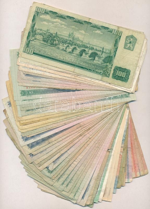 Vegyes 71db-os magyar forint és külföldi (főleg csehszlovák és jugoszláv) bankjegy tétel, közte Csehszlovákia 1986. 10K (4x) sorszámkövetők T:vegyes