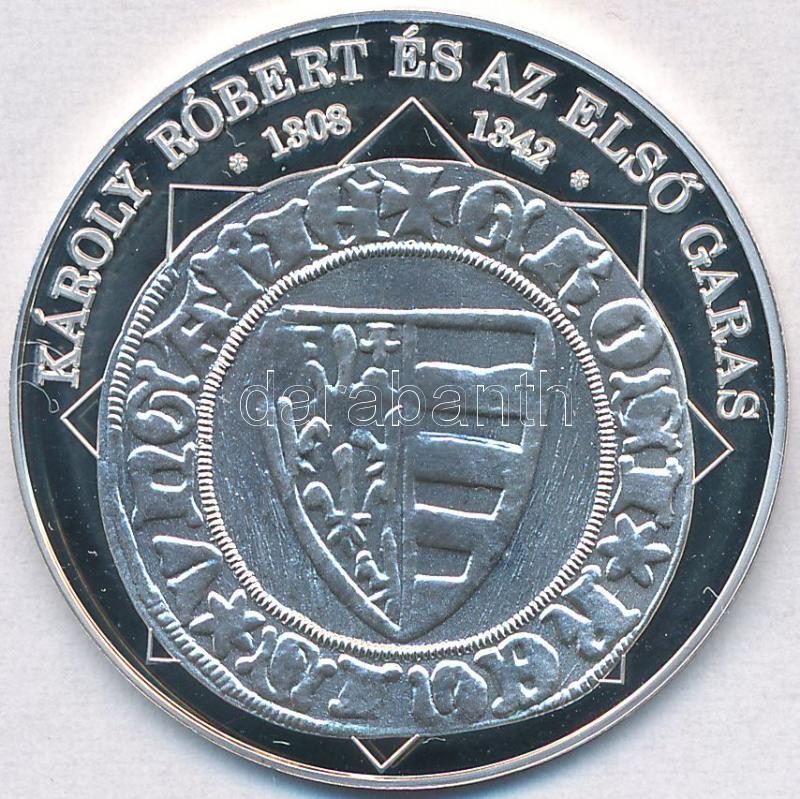 Beschreibung: DN "A magyar nemzet pénzérméi - Károly Róbert és az első garas 1308-1342" Ag emlékérem tanúsítvánnyal (10,37g/0.999/35mm) T:PP