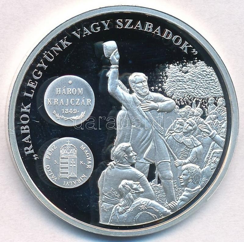 Beschreibung: DN "A magyar pénz krónikája - Rabok legyünk vagy szabadok" Ag emlékérem tanúsítvánnyal (19,67g/0.999/38,61mm) T:PP