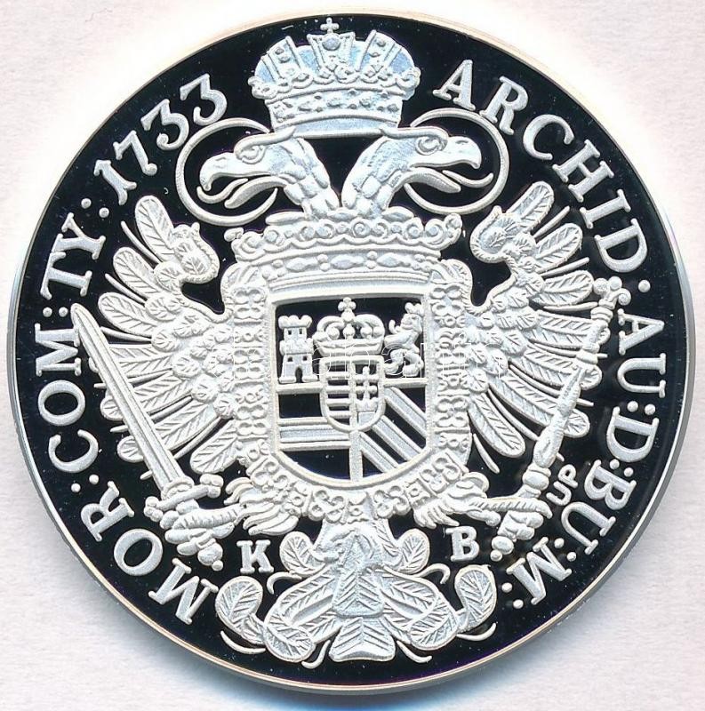 Beschreibung: DN "Magyar tallérok utánveretben - III. Károly tallérja 1733" Ag emlékérem tanúsítvánnyal (20g/0.999/38,6mm) T:PP
