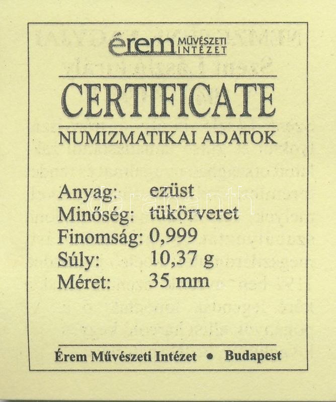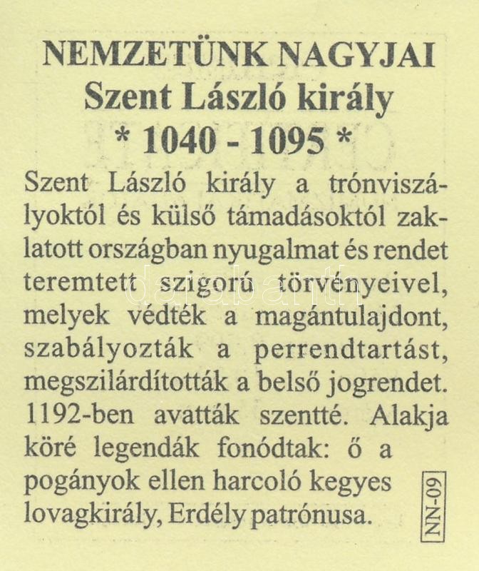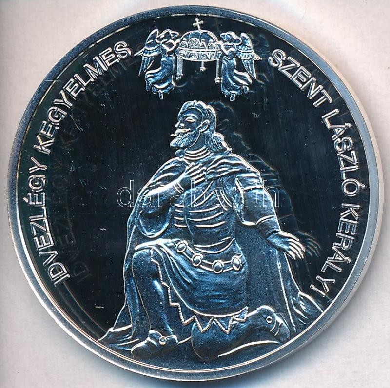DN "Nemzetünk Nagyjai - "Idvezlégy kegyelmes Szent László kerály" - Szent László király / Isten áldd meg a magyart!" Ag emlékérem tanúsítvánnyal (10,37g/0.999/35mm) T:PP kis patina