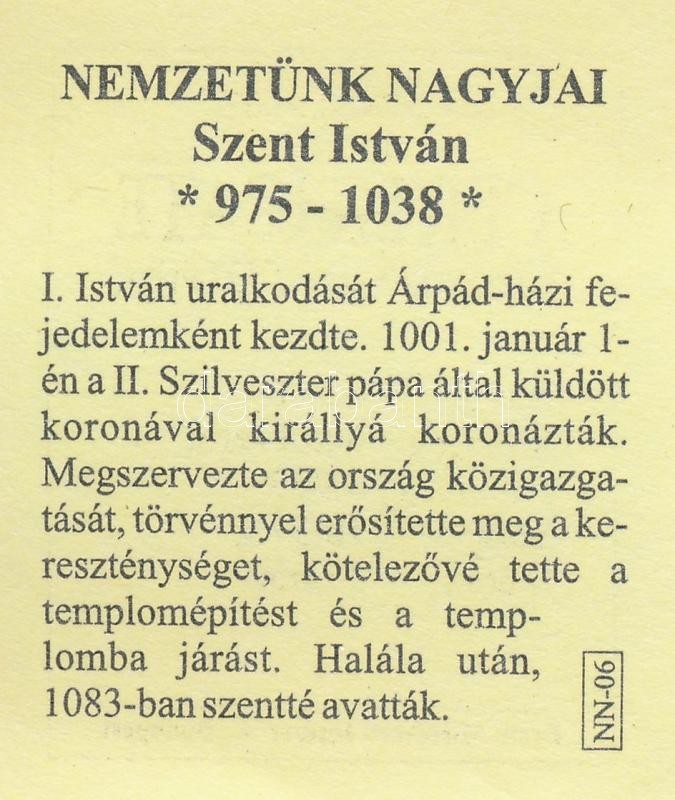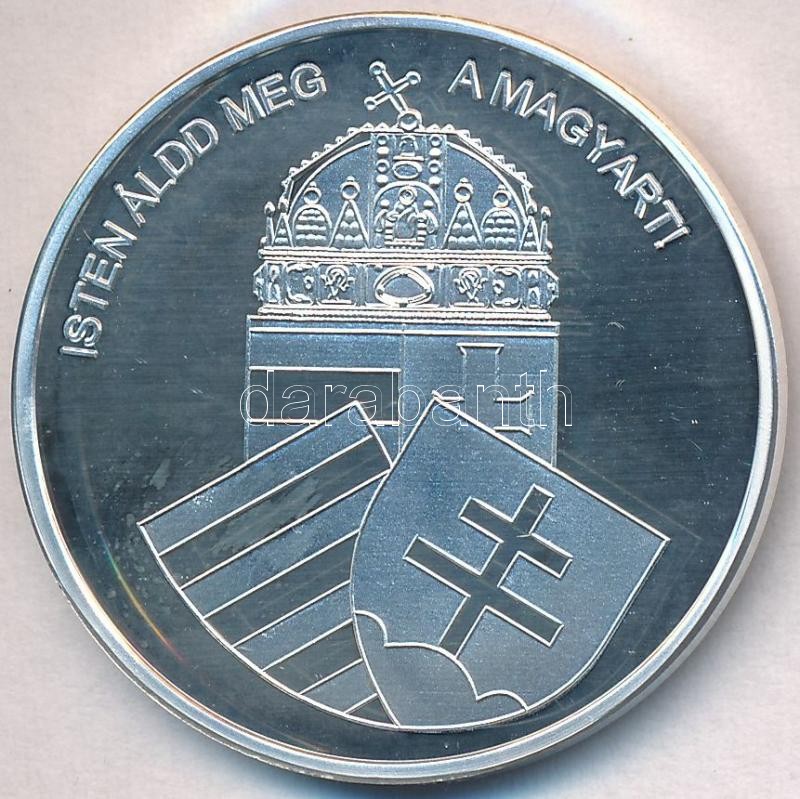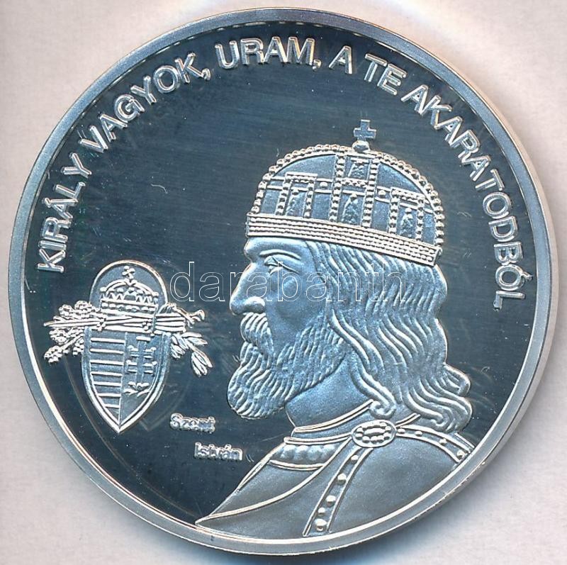 DN "Nemzetünk Nagyjai - "Király vagyok, Uram a te akaratodból" - Szent István / Isten áldd meg a magyart!" Ag emlékérem tanúsítvánnyal (10,37g/0.999/35mm) T:PP kis patina