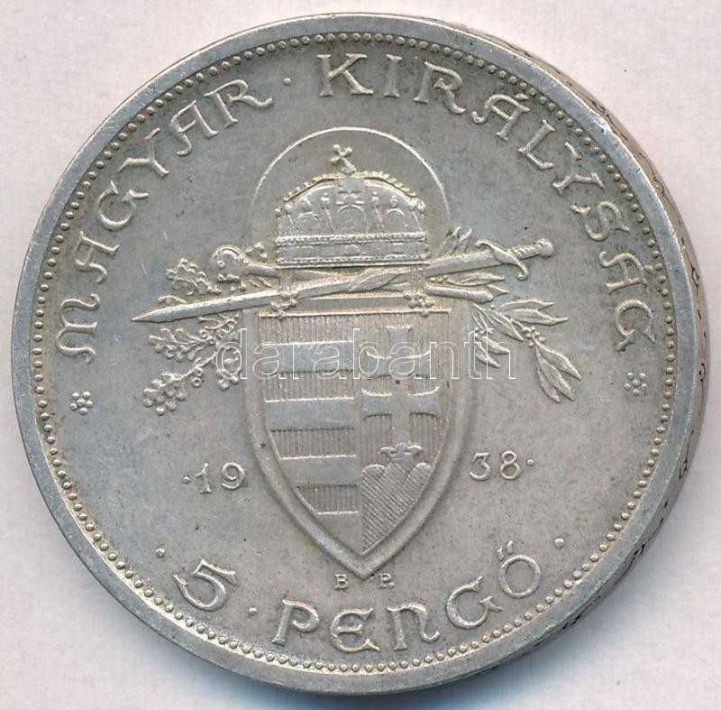Beschreibung: 1938. 5P Ag "Szent István" T:2
