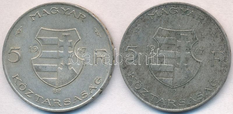 Beschreibung: 1947. 5Ft Ag "Kossuth" (2x) T:2,2- patina