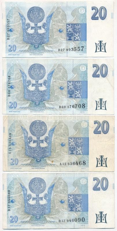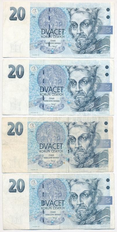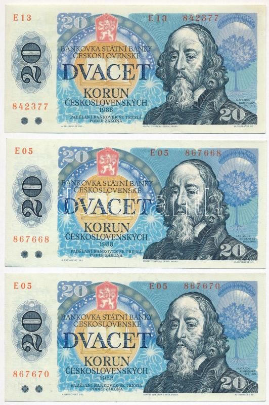 Csehszlovákia 1988. 20K (3x) közte egyugrásos sorszámkövető pár + 1994... https://www.darabanth.com/de/297-Fernauktion/297.0/Numismatik/Weltweit-Banknoten~500012/Csehszlovakia-1988-20K-3x-kozte-egyugrasos-sorszamkoveto-par-plus-1994-20K-4x-TII-III--Cz~II1584460