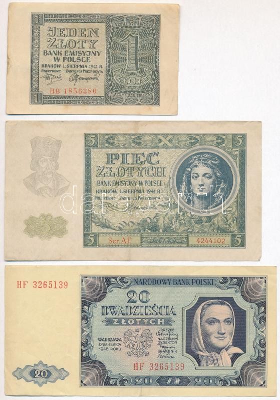 Beschreibung: Lengyelország 1932-1948. 5db-os bankjegy tétel T:III,III-