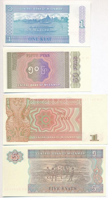 Mianmar 8db-os bankjegy tétel 50p-50K közötti címletek T:I,I-