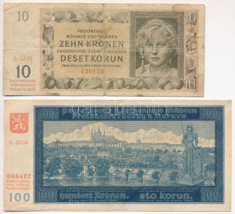 Német Harmadik Birodalom / Cseh-Morva Protektorátus 1940. 100K + 1942. 10K T:III,III-