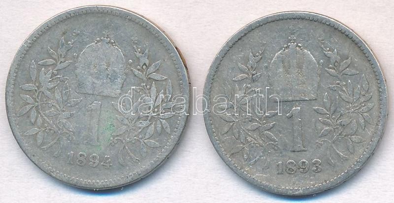 Austria 1893-1894. 1... https://www.darabanth.com/de/297-Fernauktion/297.0/Numismatik/Weltweit-Munzen~500020/Ausztria-1893-1894-1K-Ag-Ferenc-Jozsef-T2-3--Austria-1893-1894-1-Corona-Ag-Franz-Joseph-CV~II1590438