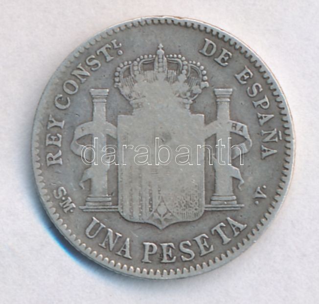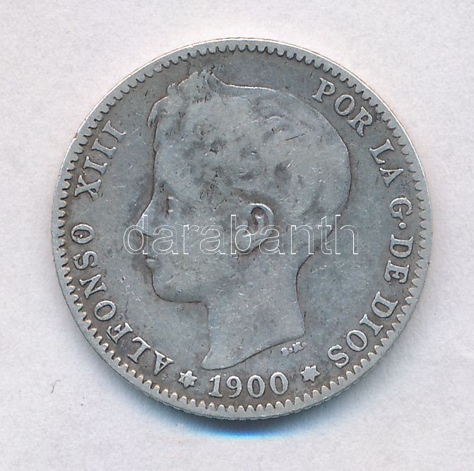 Spanyolország 1900. 1P Ag "XIII. Alfonz" T:2-,3 ph. Spain 1900. 1 Peseta Ag "Alfonso XIII" C:VF,F edge error Krause KM#706