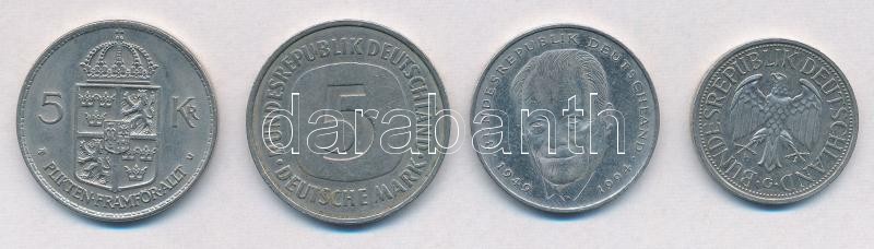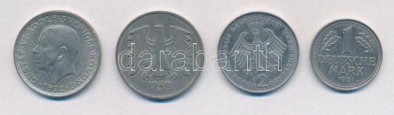 Beschreibung: Vegyes: NSZK / Németország 1980-1994. 1M + 2M + 5M + Svédország 1972U 5K Cu-Ni "VI. Gusztáv" T:2