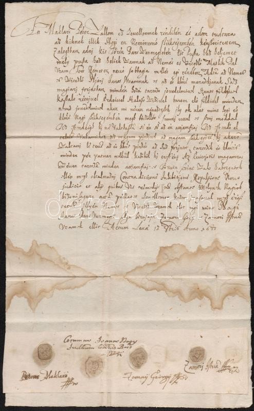 Beschreibung: 1637 Léva, magyar nyelvű záloglevél, rányomott viaszpecsétekkel