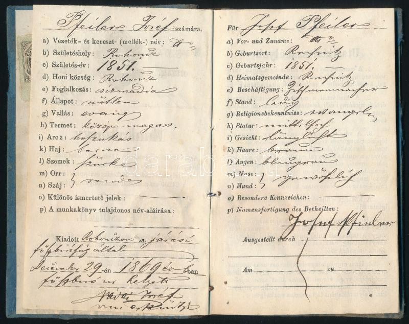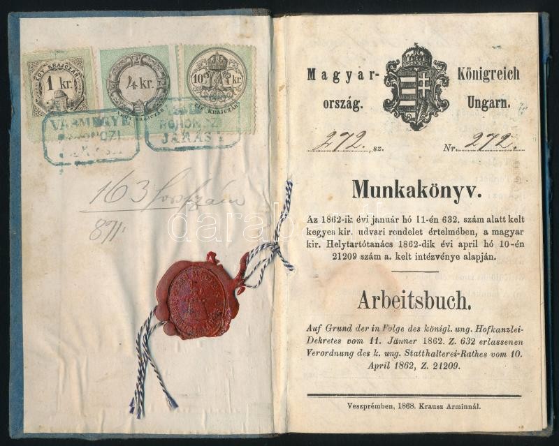 1864 Munkakönyv csizmadia részére https://www.darabanth.com/de/298-Fernauktion/298.0/Andere-Sammelgebiete/Dokument~100016/1864-Munkakonyv-csizmadia-reszere~II1592685