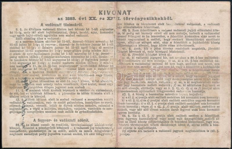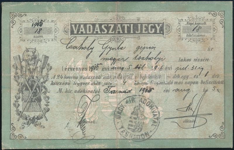 1905 Vadászjegy / Vadászati jegy / Hunter licence https://www.darabanth.com/de/298-Fernauktion/298.0/Andere-Sammelgebiete/Dokument~100016/1905-Vadaszjegy-Vadaszati-jegy-Hunter-licence~II1592665