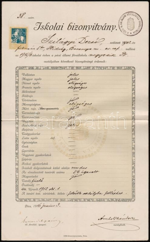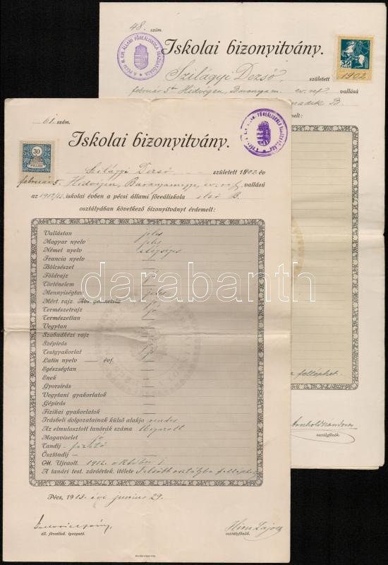 1913-1918 Pécs, Vegyes iskolai bizonyítvány tétel, okmánybélyegekkel, ... https://www.darabanth.com/de/298-Fernauktion/298.0/Andere-Sammelgebiete/Dokument~100016/1913-1918-Pecs-Vegyes-iskolai-bizonyitvany-tetel-okmanybelyegekkel-5-db~II1594192