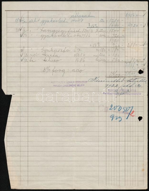 Beschreibung: 1922 Díszes fejléces számla, Rigler József Ede Papirnemügyár Rt., Bp., 2 k. okmánybélyeggel, szakadozott.