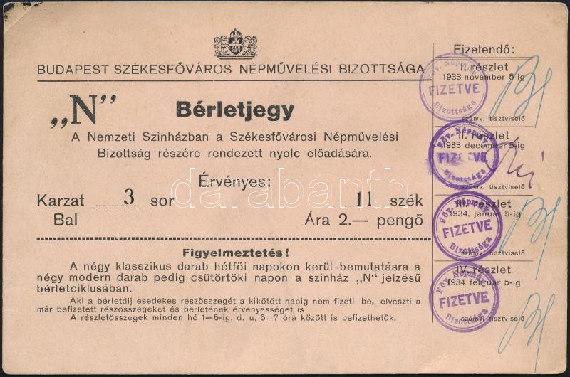 1933-1934 Belépőjegy a Nemzeti Színház nyolc előadására, 10x15,5 cm https://www.darabanth.com/de/298-Fernauktion/298.0/Andere-Sammelgebiete/Dokument~100016/1933-1934-Belepojegy-a-Nemzeti-Szinhaz-nyolc-eloadasara-10x15-5-cm~II1593367