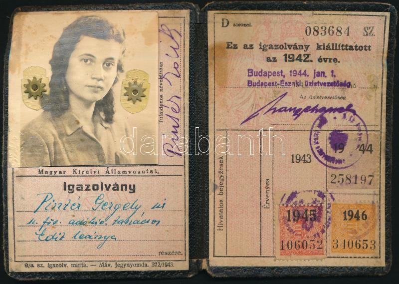 1942 Magyar Királyi Államvasutak (MÁV) félárú jegy váltására jogosító ... https://www.darabanth.com/de/298-Fernauktion/298.0/Andere-Sammelgebiete/Dokument~100016/1942-Magyar-Kiralyi-Allamvasutak-MAV-felaru-jegy-valtasara-jogosito-fenykepes-igazolv~II1593606