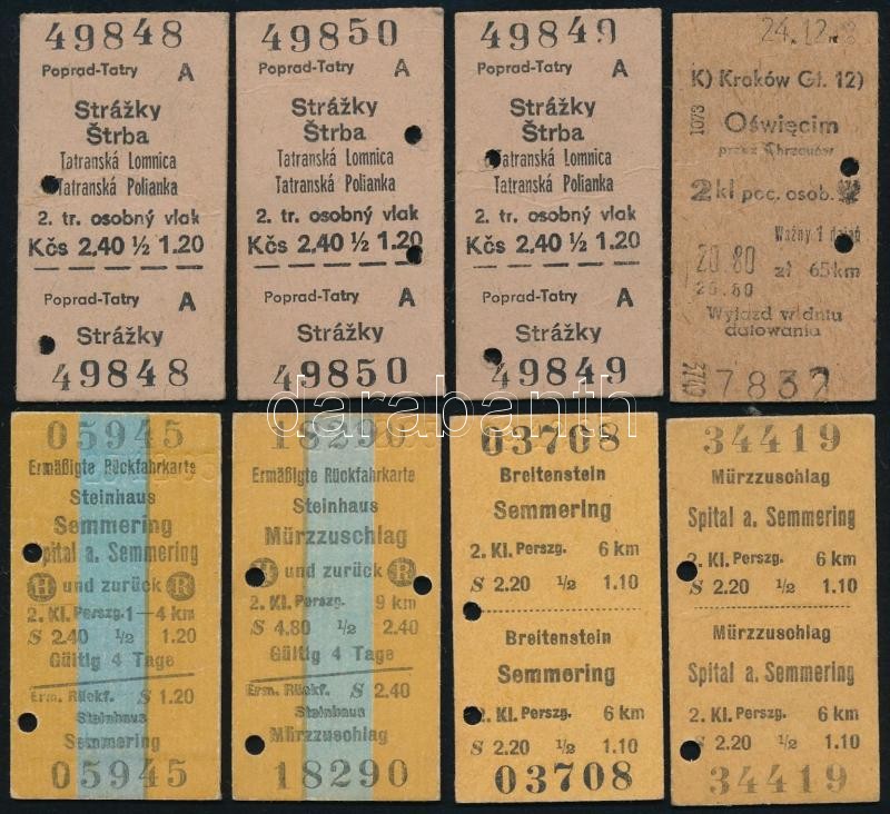 Beschreibung: Régi vasúti menetjegyek (cseh, lengyel, osztrák), 8 db