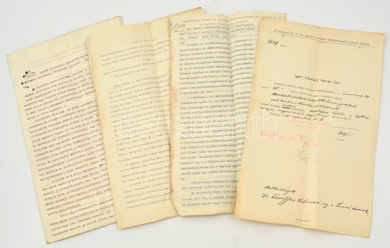cca 1910-1911 Különféle iratok (jegyzőkönyv, stb.) orvosi és munkás biztosítási ügyekben, némelyiken Tauffer Vilmos (1851-1934) szülész, egyetemi tanár aláírásával