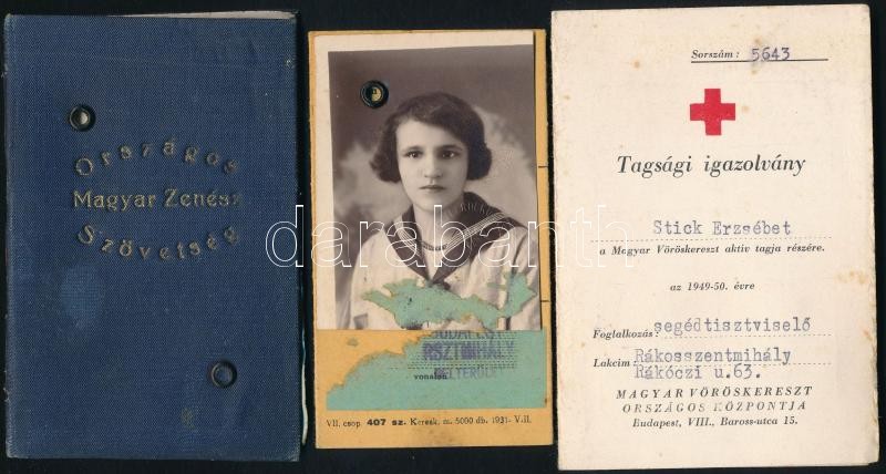 Beschreibung: cca 1920-1950 3 érdekes igazolvány: fényképes zenész igazolvány, vöröskeresztes és utazási