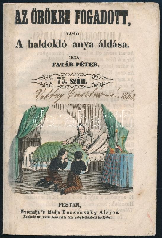 1857 Az örökbe fogadott, vagy a haldokló anya áldása. Írta Tatár Péter... https://www.darabanth.com/de/298-Fernauktion/298.0/Andere-Sammelgebiete/Drucksachen~100026/1857-Az-orokbe-fogadott-vagy-a-haldoklo-anya-aldasa-Irta-Tatar-Peter-Pesten-1857-Bucsa~II1597325
