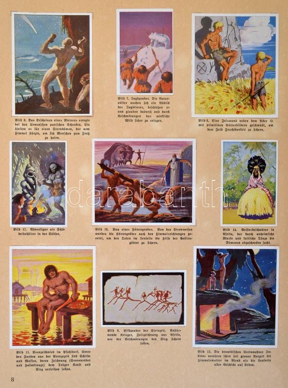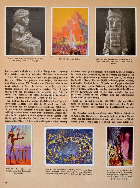 Geheime Machte? Band 1. München, é.n. (1934?), Austria Zigarettenfabrik. Kiadói illusztrált félvászon-kötés, a borító svasztikával illusztrált, kopottas borítóval, cigarettakártyákkal, és egészoldalas illusztrációkkal illusztrálva, egy-két cigarettakártya kivételével teljes, német nyelven./ Half-linen-binding, with worn cover, some cigarette cards lost, in German language.