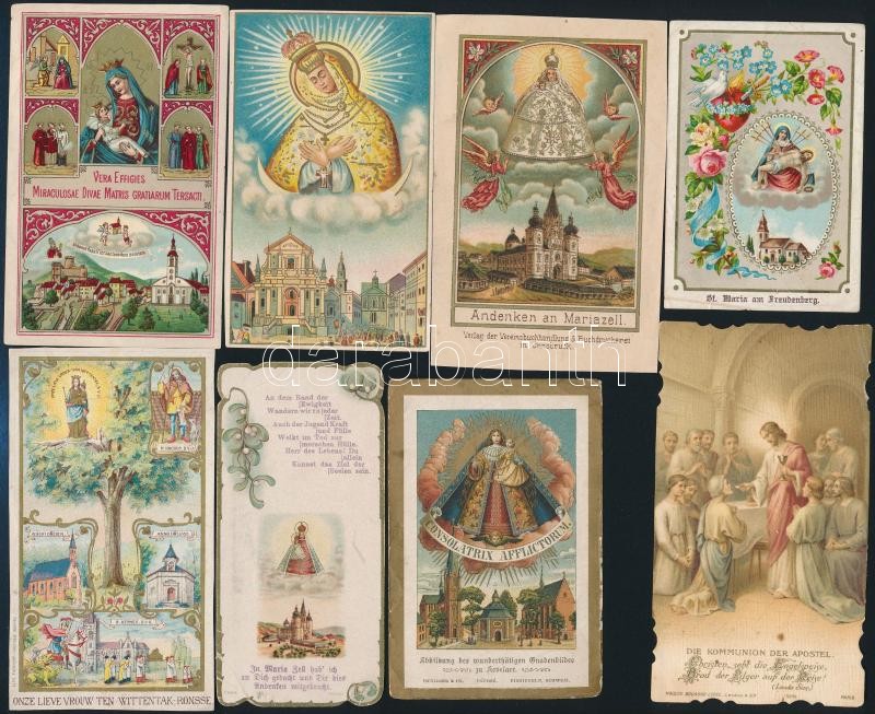 Beschreibung: Vegyes régi szentkép tétel, 10 db, 11x6 cm és 8x5 cm közötti méretben.
