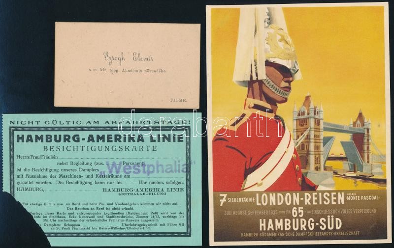 Beschreibung: cca 1920-1940 5 db hajózással kapcsolatos nyomtatvány. reklám.