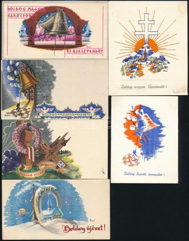 cca 1940 14 db Bozó Gyula (1913-2004) grafikus-iparművész által tervez... https://www.darabanth.com/de/298-Fernauktion/298.0/Andere-Sammelgebiete/Drucksachen~100026/cca-1940-14-db-Bozo-Gyula-1913-2004-grafikus-iparmuvesz-altal-tervezett-udvozlo-kartya-kC3~II1593088