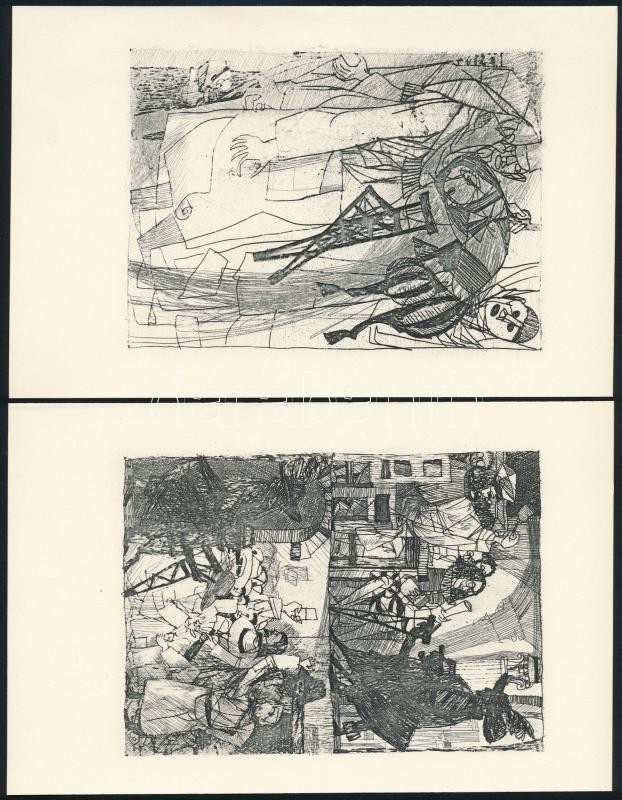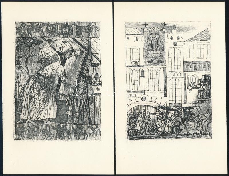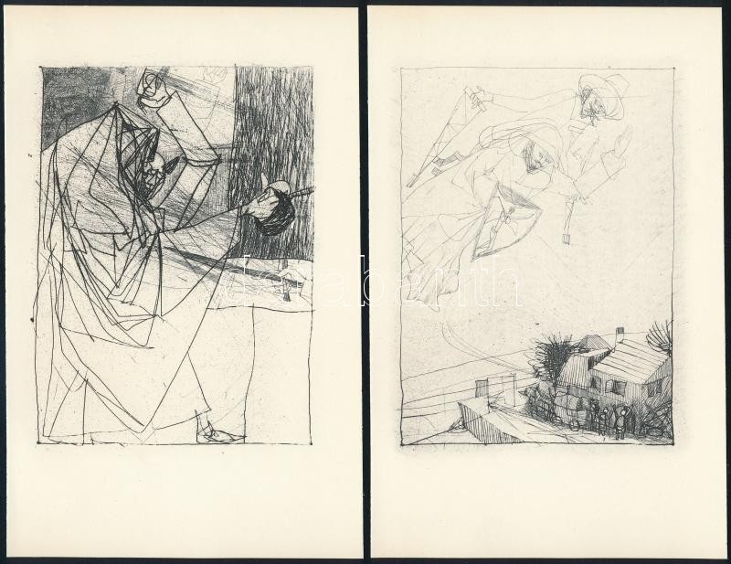 Beschreibung: Kondor Béla (1931-1972): 10 db Illusztráció (Vélez de Guevara: A sánta ördög), rézkarc, papír, jelzés nélkül, 11×8 cm