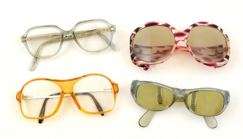 Beschreibung: 4 db retro szemüveg és napszemüveg, műanyag kerettel, változó állapotban