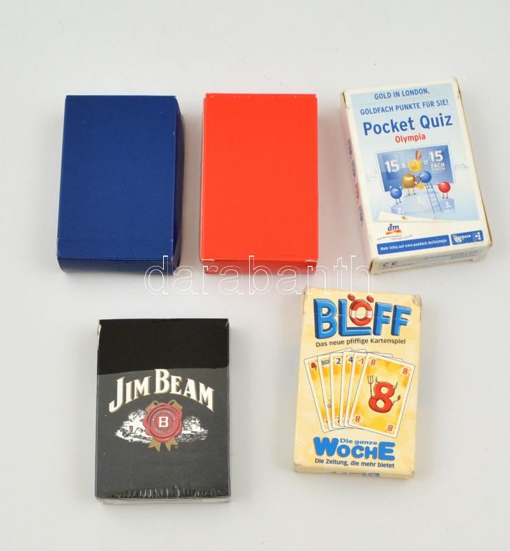 5 pakli kártya (kérdés-felelet, Blöff, Quiz, Jim Beam francia kártya) https://www.darabanth.com/de/298-Fernauktion/298.0/Andere-Sammelgebiete/Flohmarkt~100011/5-pakli-kartya-kerdes-felelet-Bloff-Quiz-Jim-Beam-francia-kartya~II1595213