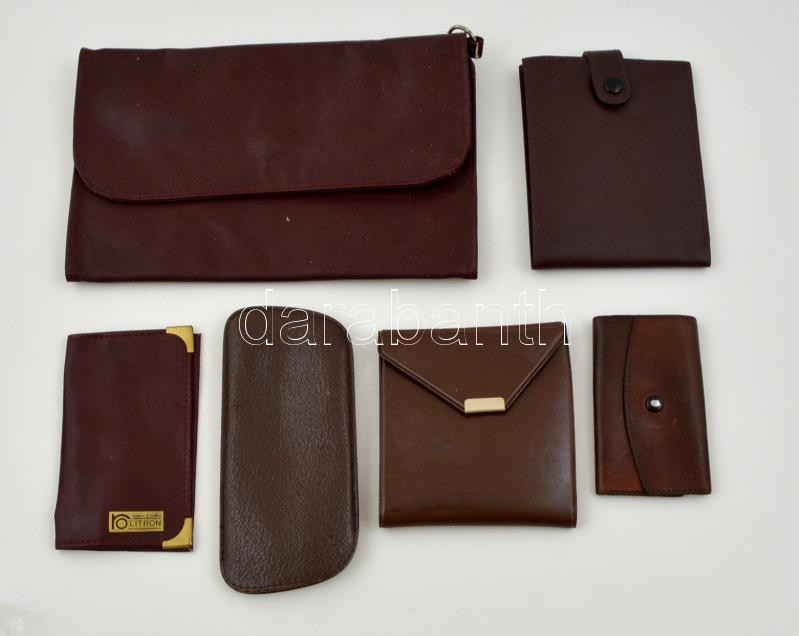 Beschreibung: 6 db bőrből készült használati tárgy (kézitáska, pénztárca, kulcstartó, stb.)