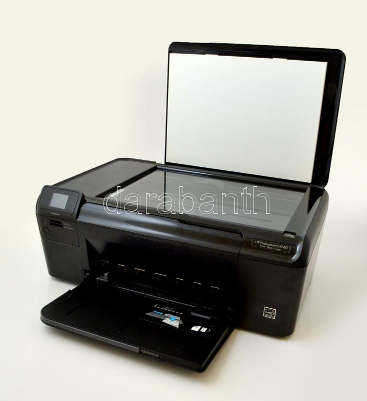 HP Photosmart C4680 fekete színű multifunkciós nyomtató szkennerrel (A4), adapterrel, USB-kábellel, működik, patroncserére szorul, egyébként jó állapotban