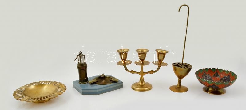 Beschreibung: Kis réz tétel: dekoratív keleti hamutálka, keleti tálka, háromágú gyertyatartó, stb., különböző méretben, összesen 5 db