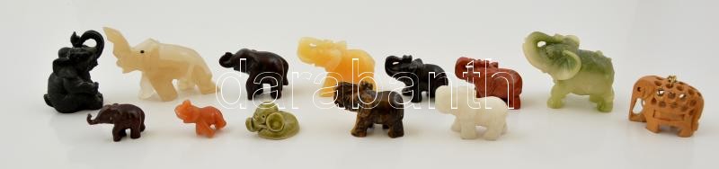 Beschreibung: Különféle anyagú (féldrága kövek is) elefánt figurák ( 13 db), m:2-7 cm