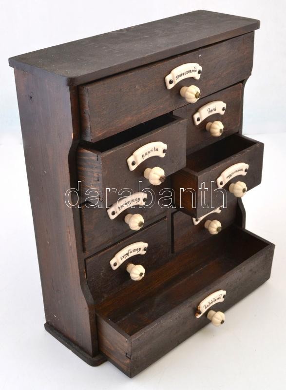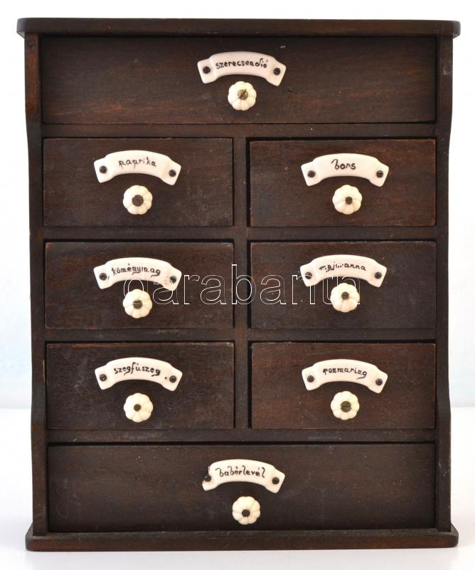 Régi fiókos fűszertartó polc, porcelán feliratokkal és gombokkal, az e... https://www.darabanth.com/de/298-Fernauktion/298.0/Andere-Sammelgebiete/Flohmarkt~100011/Regi-fiokos-fuszertarto-polc-porcelan-feliratokkal-es-gombokkal-az-egyik-feliraton-kis-serC3~II1594638
