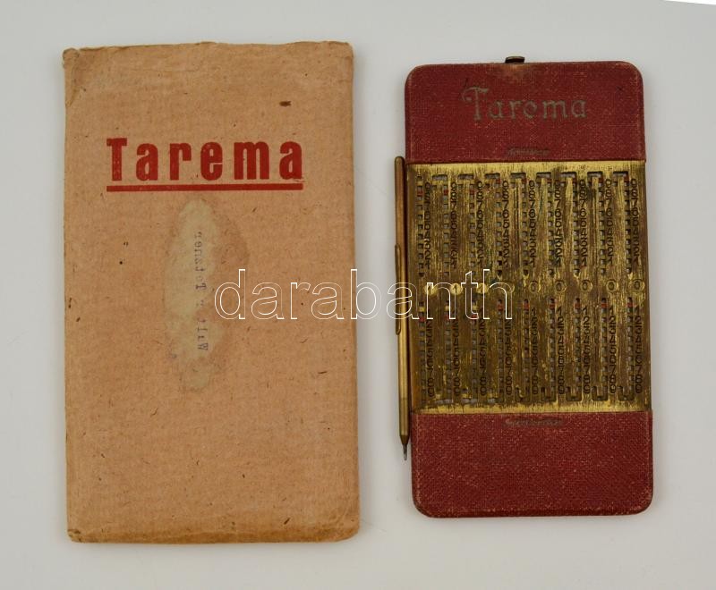 Tarema régi német mechanikus számológép, eredeti papír tokjában, leírá... https://www.darabanth.com/de/298-Fernauktion/298.0/Andere-Sammelgebiete/Flohmarkt~100011/Tarema-regi-nemet-mechanikus-szamologep-eredeti-papir-tokjaban-leirassal~II1592796