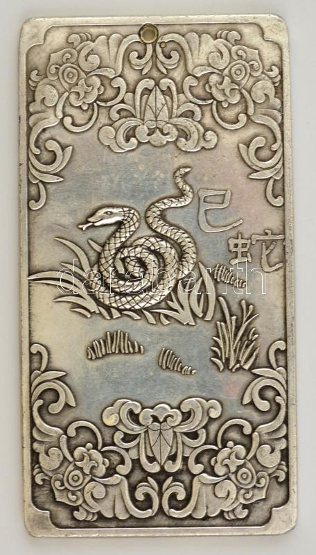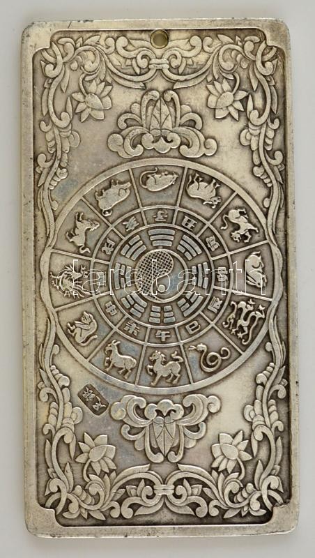 Beschreibung: Tibeti ezüst (Ag. 50% alatti ezüst tartalommal) horoszkóp plakett, jelzett, 9,5×5 cm
