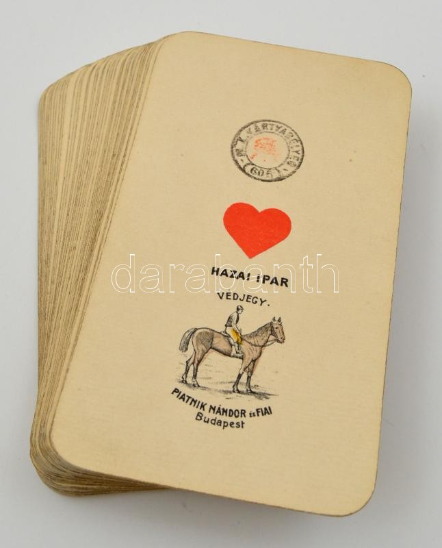 cca 1900-1920 Régi Piatnik tarokk kártya pakli, 42 lappal, adóbélyeggel. Jó állapotban./