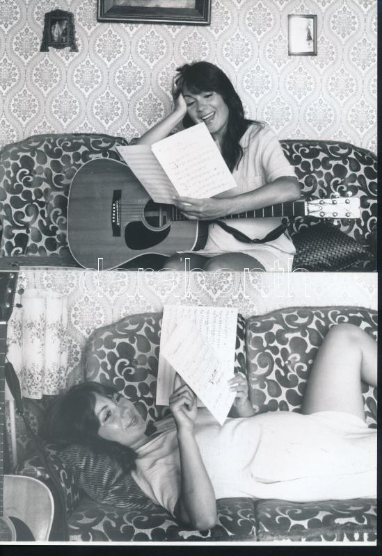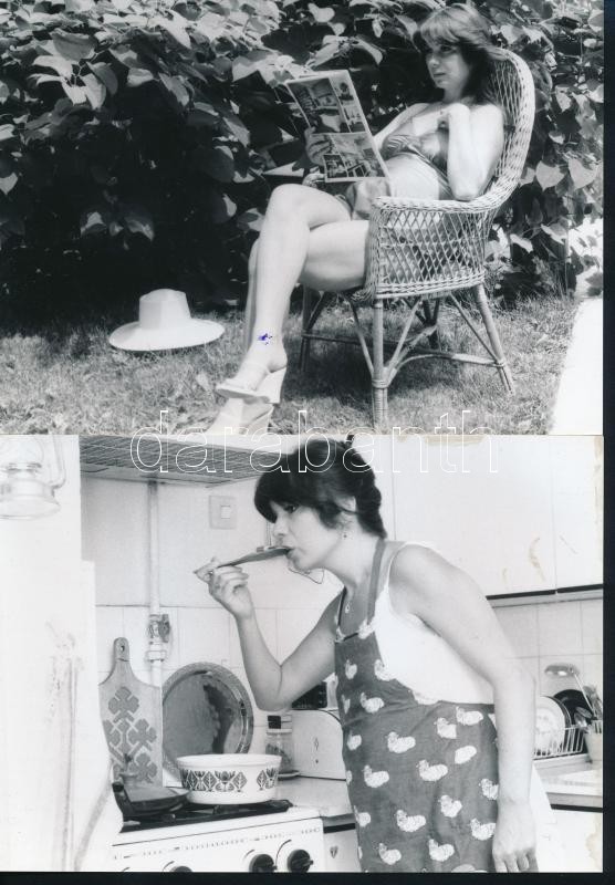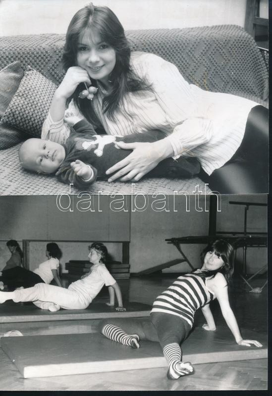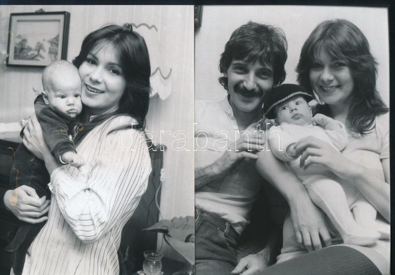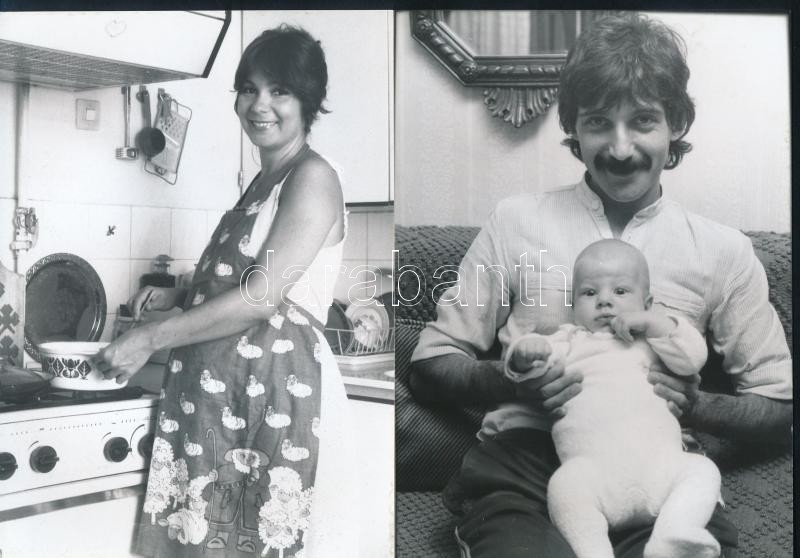 cca 1977 Heilig Gábor és Eszményi Viktória előadóművészek, 13 db vintage fotó a fiatal házasokról, a gyermekvárásról és Tamás születése utáni boldog pillanatokról, néhány kép jelzett, 13x18 cm