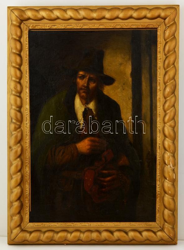 Beschreibung: Telser jelzéssel: Kalapos férfi. Olaj, vászon, antik keretben, 78×56 cm